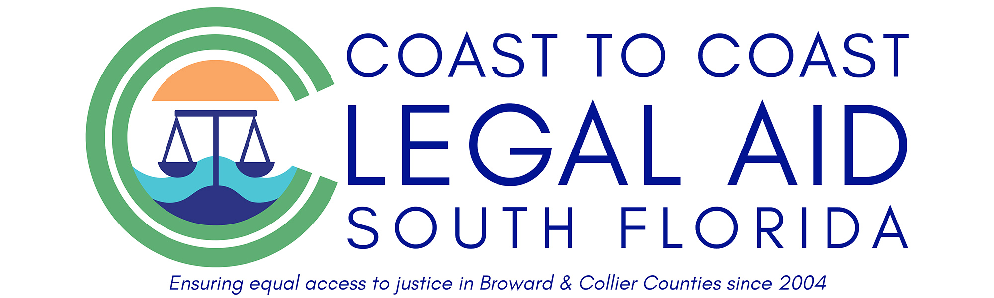 Coast to Coast Legal Aid of South Florida is an equal opportunity provider and employer. In accordance with federal law and U.S. Department of Justice policy, this organization is prohibited from discriminating on the basis of race, color, national origin, religion, sex, age, or disability. To file a complaint of discrimination, contact or write Office for Civil Rights, Office of Justice Programs, U.S. Department of Justice, 810 7th Street, NW, Washington, DC 20531 or call 202-307-0690 (Voice) or 202-307-2027 (TDD/TYY). Individuals who are hearing impaired or have speech disabilities may also contact OCR through the Federal Relay Service at 800-877-8339 (TTY) or 877-877-8982 (Speech), or 800-845-6136 (Spanish), or contact the Department of Legal Affairs, PL-01 The Capitol, Tallahassee, Florida, 32399, or call 850-414-3300. Public Law 104-134 requires donors be advised that any funds received by Coast to Coast Legal Aid of South Florida may not be expended for any purpose prohibited by the Legal Services Corporations Act or Public Law 104-134. Coast to Coast Legal Aid of South Florida is funded in part by the Legal Services Corporation (LSC) and does not engage in restricted activities prohibited by the LSC Act or LSC Regulations.